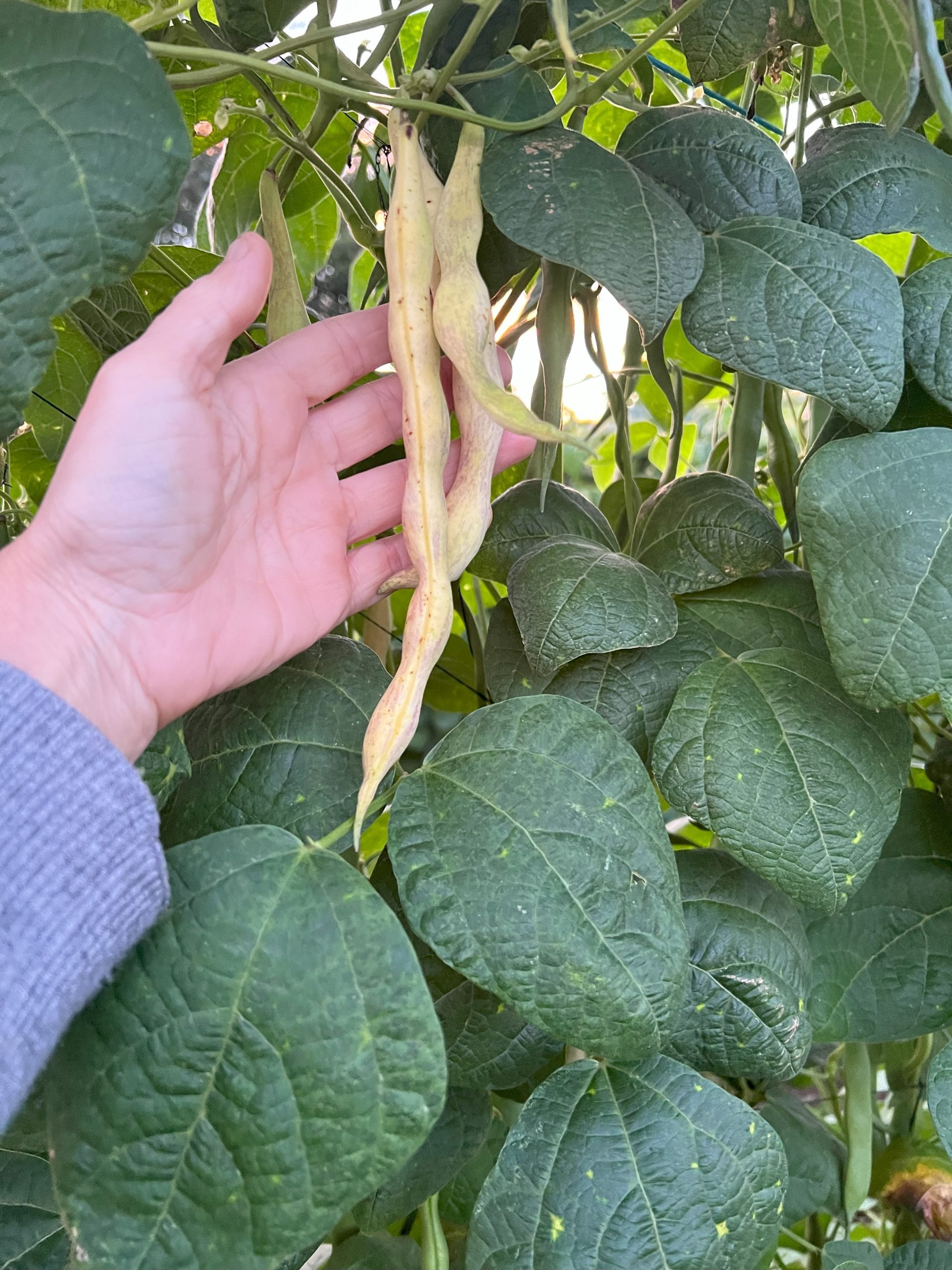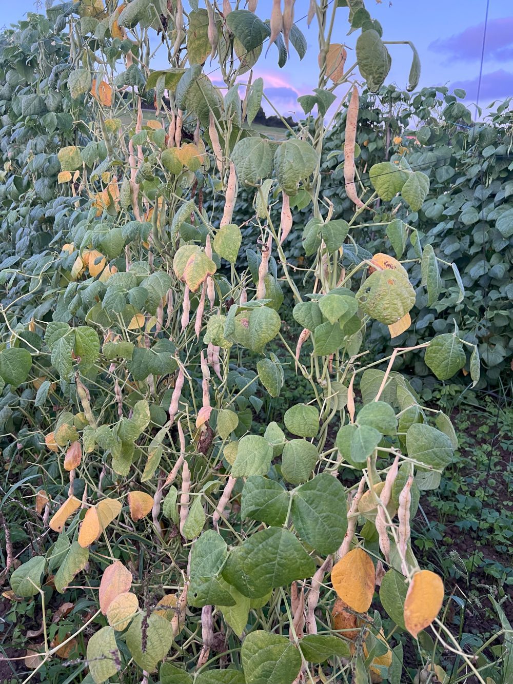 Cultivamos la faba y cuando las vainas están en el punto justo se van quitando de la planta, escogiéndolas de una en una.
