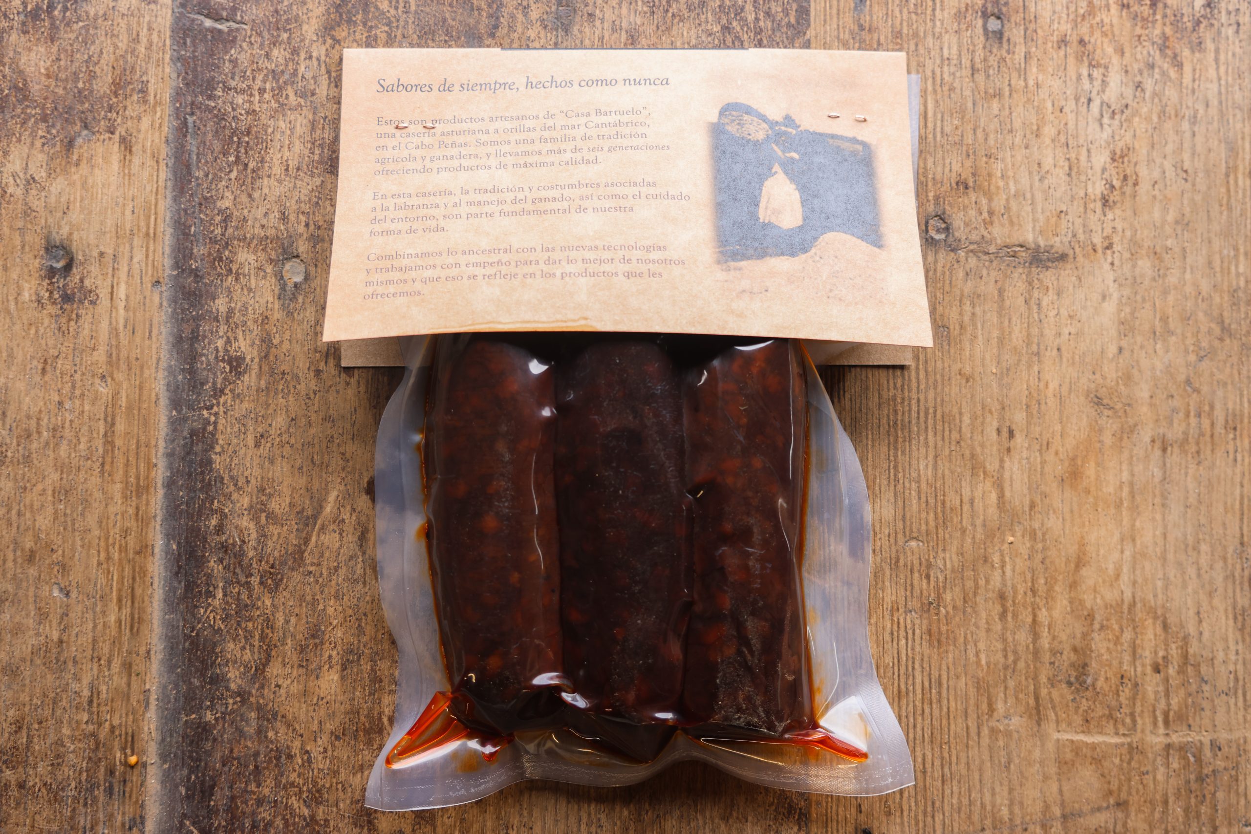 En Casa Bartuelo, nos enorgullece ofrecerte nuestra morcilla asturiana, un producto que refleja nuestro compromiso con la tradición y la calidad. Elaborada con esmero en nuestras propias instalaciones, siguiendo la receta transmitida de generación en generación. Nuestro objetivo es capturar en cada pieza de morcilla la esencia de nuestra tierra y las raíces culinarias que nos definen.